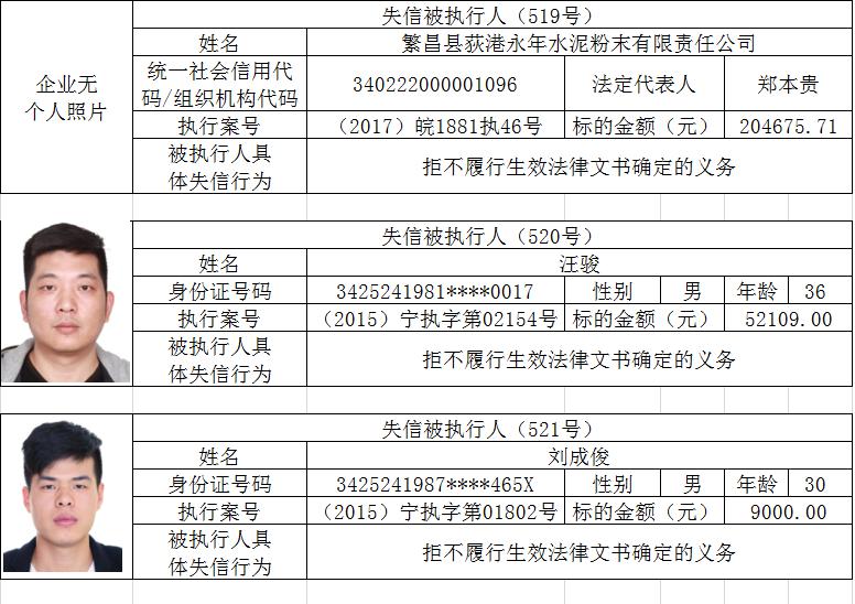 | 第二十五批【2017年4月批次】公布宁国市失信被执行人名单(截止2017年4月28日) |